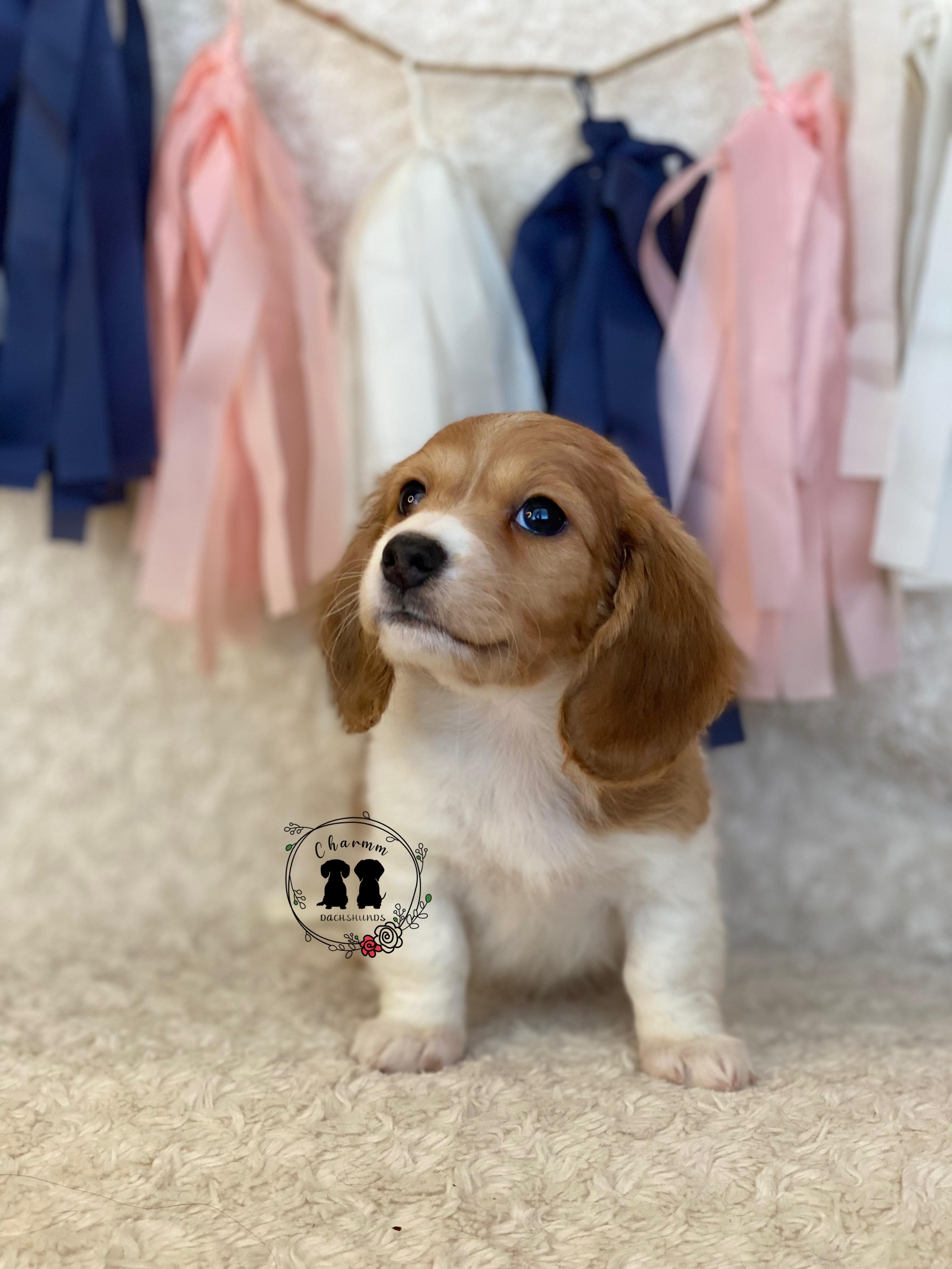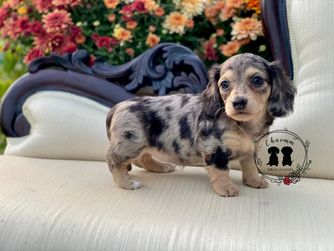 Rachel was great to work with! She was very responsive, answered all of our questions, and even took time to call with us so we could see our puppy before pick-up. We have loved our happy and healthy puppy from Charmm Dachshunds!