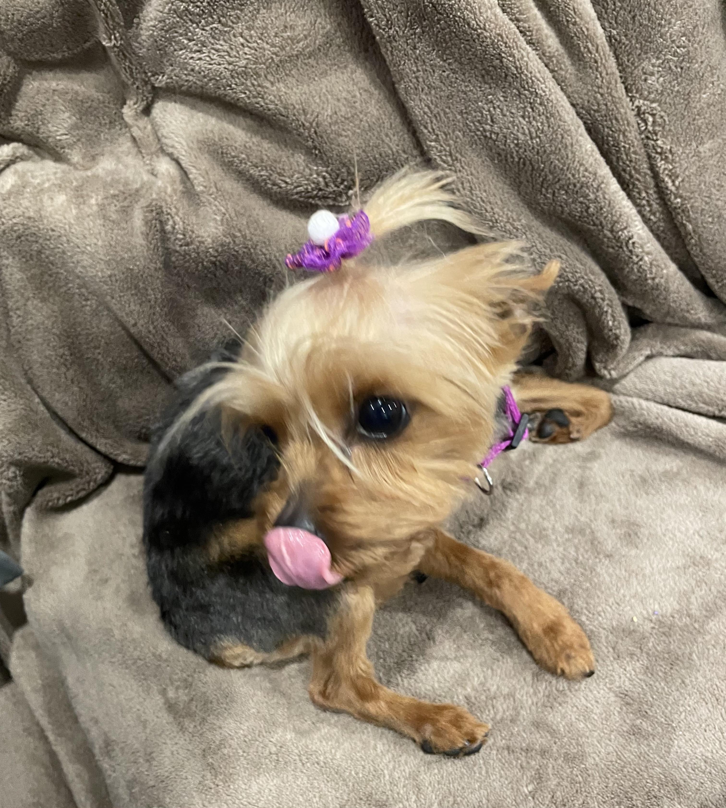 Juno is a female Yorkshire Terrier. Carefully selected as a great representative of her breed, Jamie decided to make her part of their program. Jamie has passed Good Dog’s screening process, which involved a review of their breeding practices, environment, and the mental and physical health of their dogs.