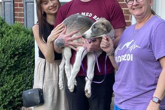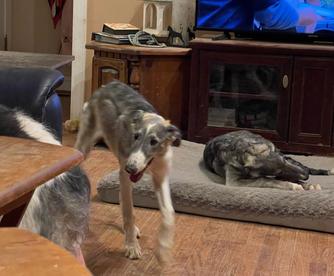 Kenickie is a male Borzoi. Carefully selected as a great representative of his breed, Stephanie decided to make him part of their program. Stephanie has passed Good Dog’s screening process, which involved a review of their breeding practices, environment, and the mental and physical health of their dogs.