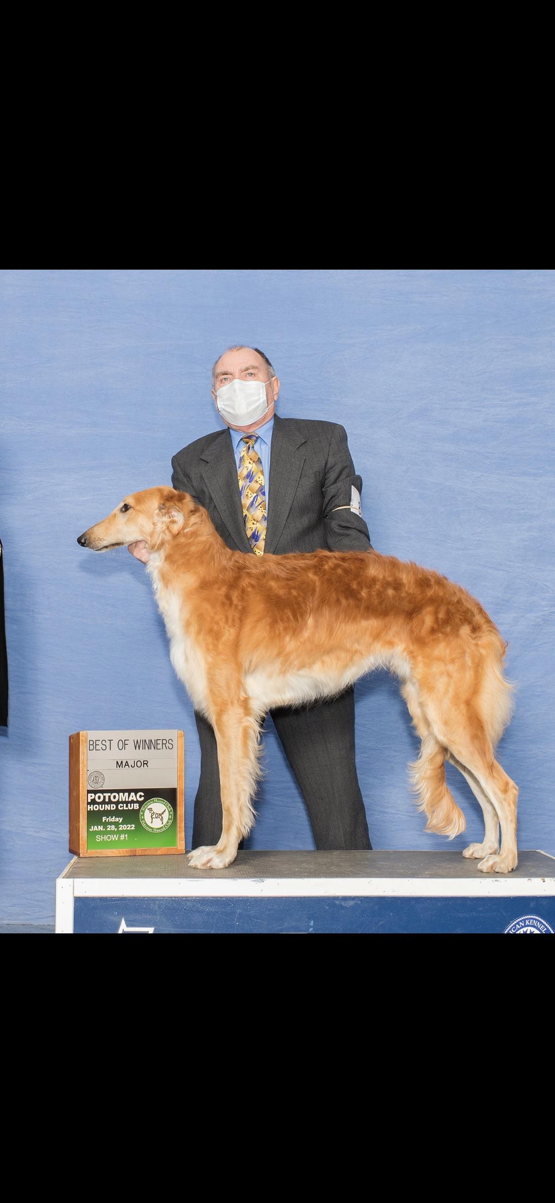 Aerus is a male Borzoi. Carefully selected as a great representative of his breed, Stephanie decided to make him part of their program. Stephanie has passed Good Dog’s screening process, which involved a review of their breeding practices, environment, and the mental and physical health of their dogs.
