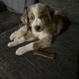 I have always been interested in breeding for as long as I can remember. I have bred many species of animals in my adult life . I loved being in the goat world and plan on having some again . I acquired my mini aussie Marley when she was 6 months old and I fell even more in love with the breed . I love what I do . I love raising puppies and also love making people happy with a new best friend.