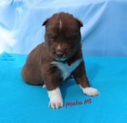 Mocha is mostly red/brown with blue eyes. AKC.