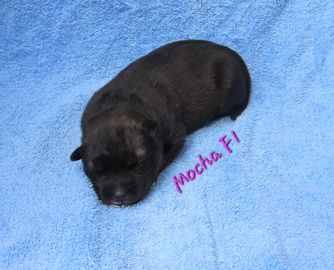 Mocha's pups are beginning to be very active and are starting to interact really well with us. Beginning to sample Mom's food. Some are beginning to use the potty box. Personalities will begin to emerge now.