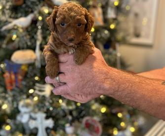 Our Havapoo puppies are black and tan. Lagotto Romagnolo puppies are brown roan. Poodle puppies are red. Colors will vary depending on the parent dogs.