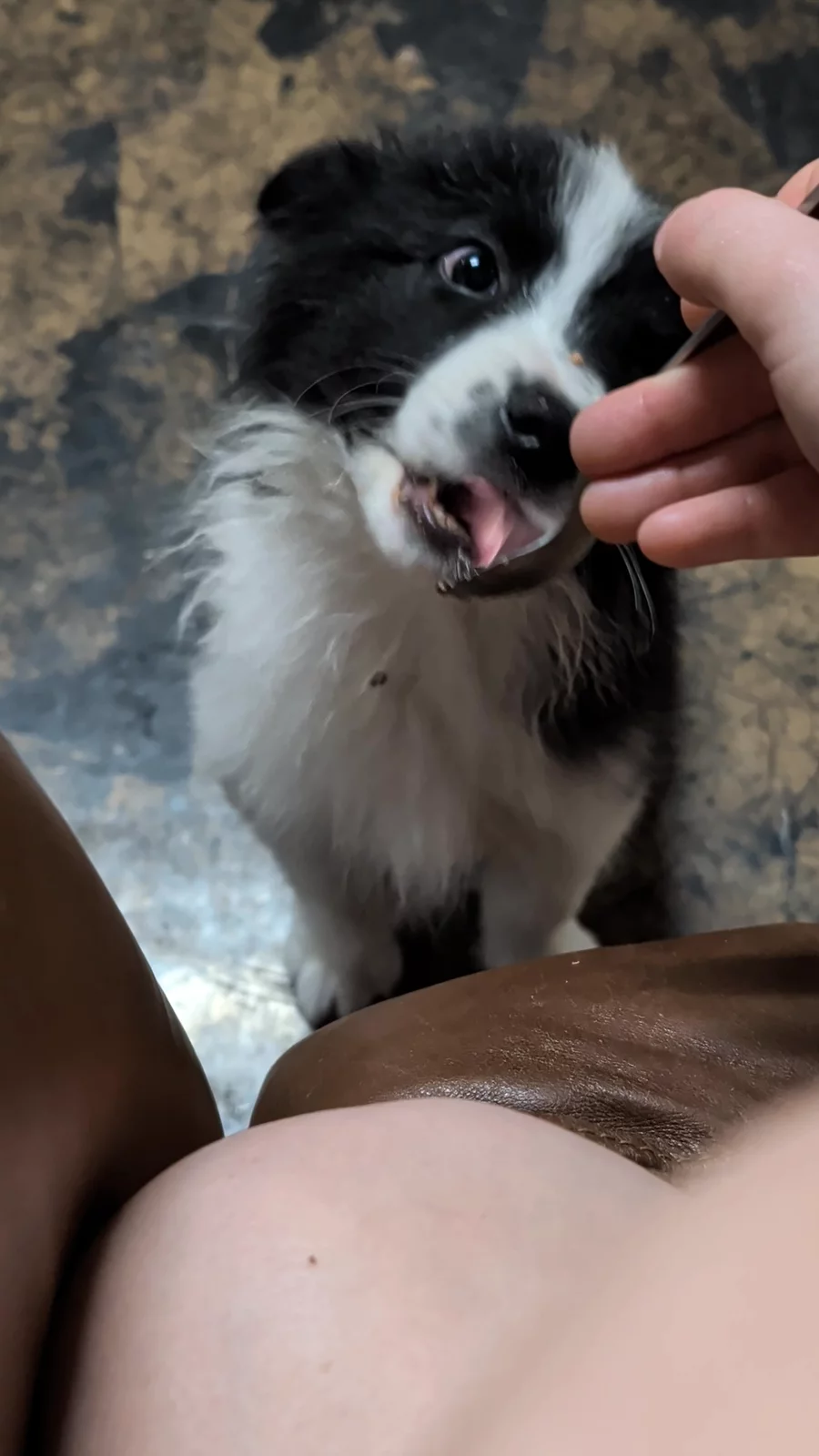 First meal for Beans' litter! They thought it was quite delicious!