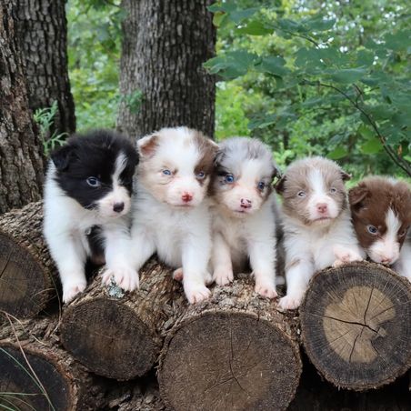 Our puppies include blue merle, red merle, blue, lilac, red, and seal. Colors will vary depending on the parent dogs.