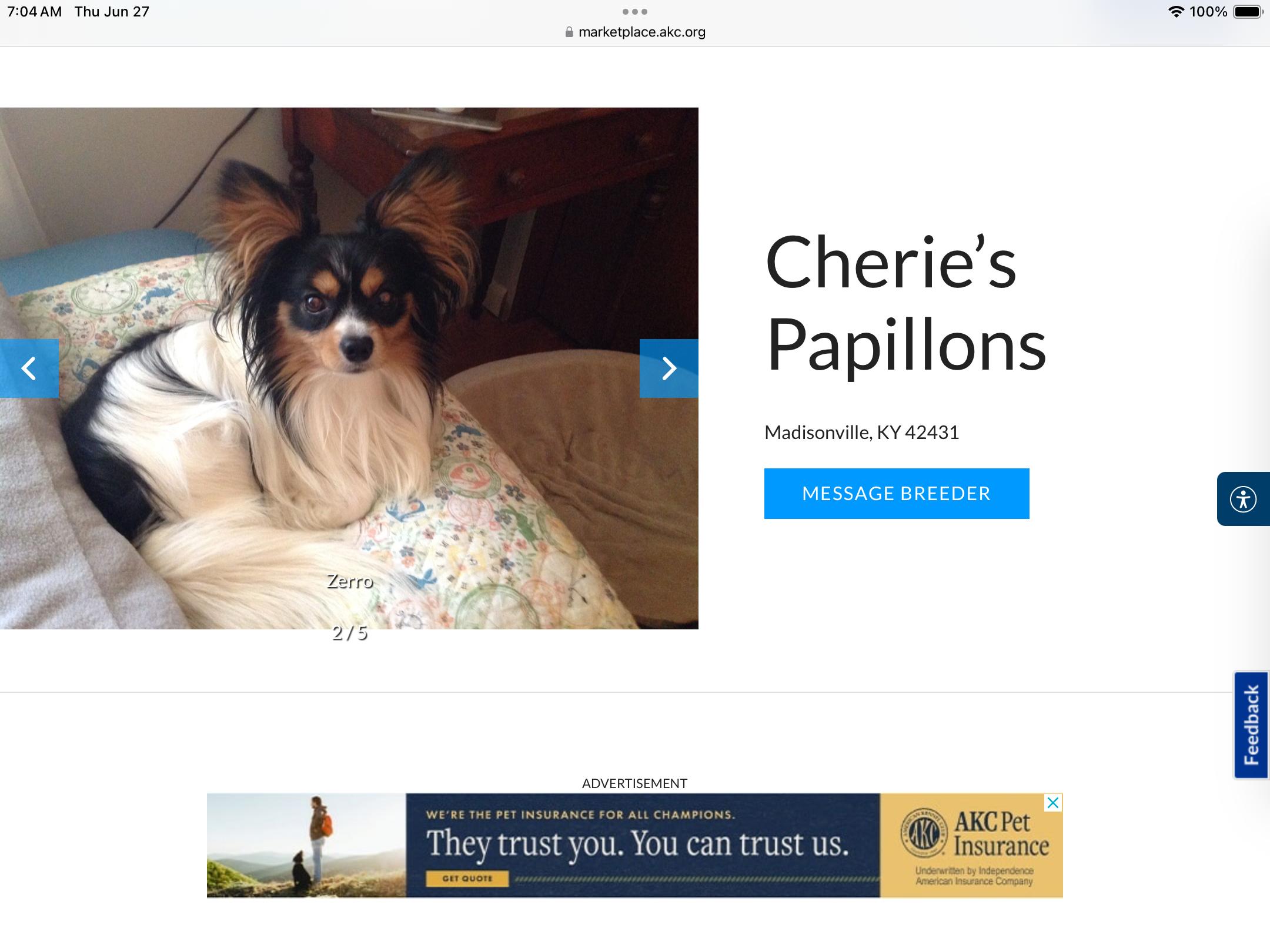 I'm Cherie R., the breeder behind Cherie Ray's Papillons located in Madisonville, KY. I love being a breeder! It's so fulfilling to see the positive effect that a beloved, furry companion can have on its family. I am a small-scale breeder, allowing me to give each of my puppies, dogs, and breedings the proper care and attention they each deserve. I am dedicated to providing happy, healthy, and well-socialized pups for others to welcome into their family. I love my pups and know you will love them, too!