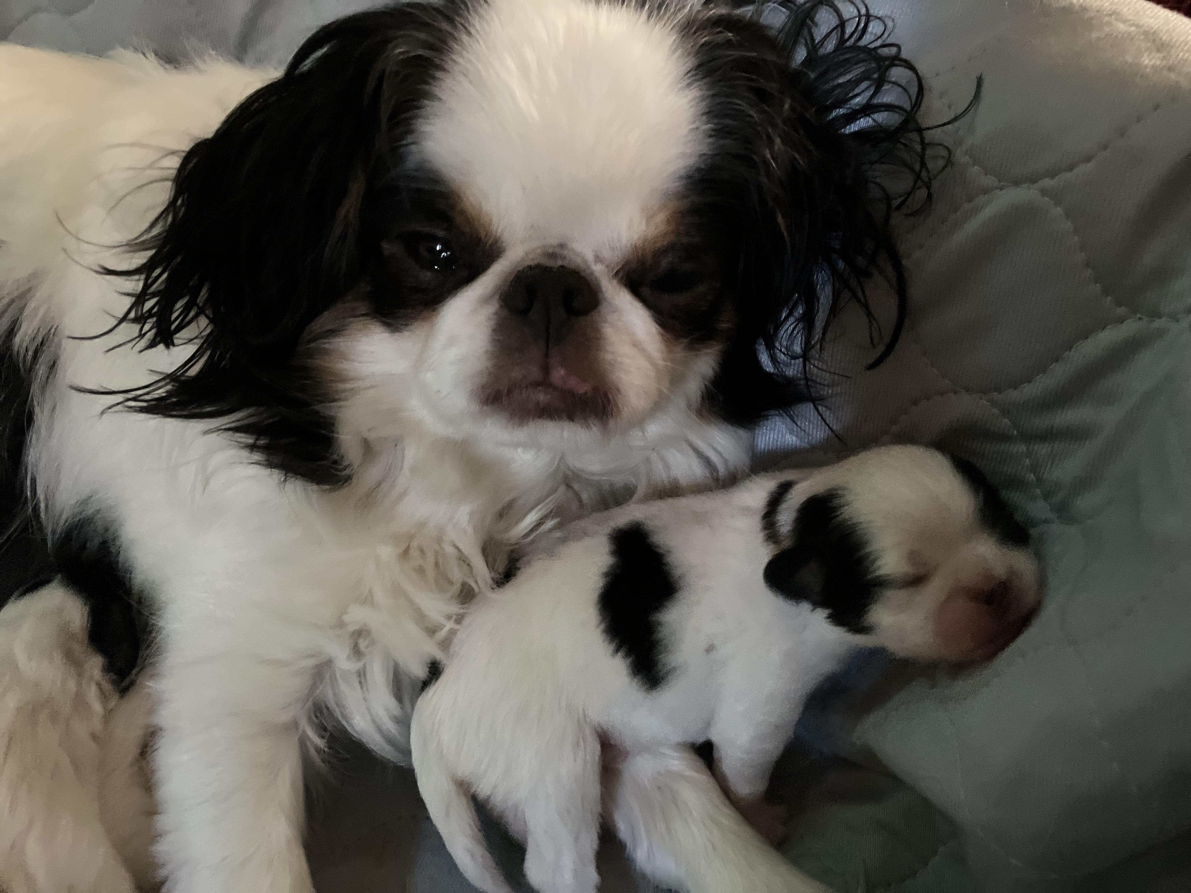 Angel Mae queen is a female Japanese Chin. Carefully selected as a great representative of her breed, Lynnette decided to make her part of their program. Lynnette has passed Good Dog’s screening process, which involved a review of their breeding practices, environment, and the mental and physical health of their dogs.