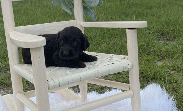 Our Goldendoodle puppies include cream, apricot, red, chocolate, and black. Labradoodle puppies include apricot, cream, chocolate, and black. Colors will vary depending on the parent dogs.