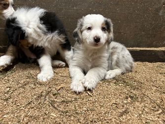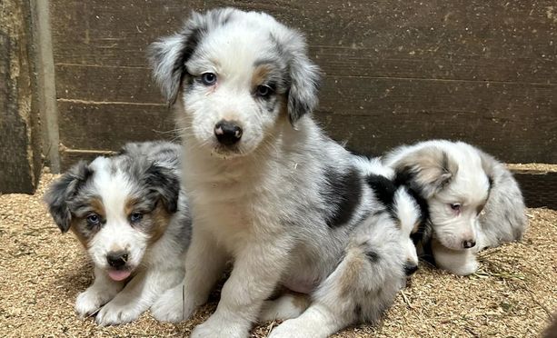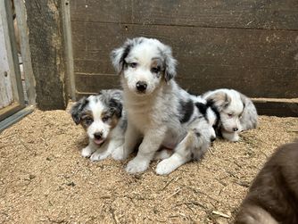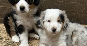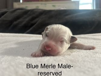 Our puppies include black and blue merle. Colors will vary depending on the parent dogs.