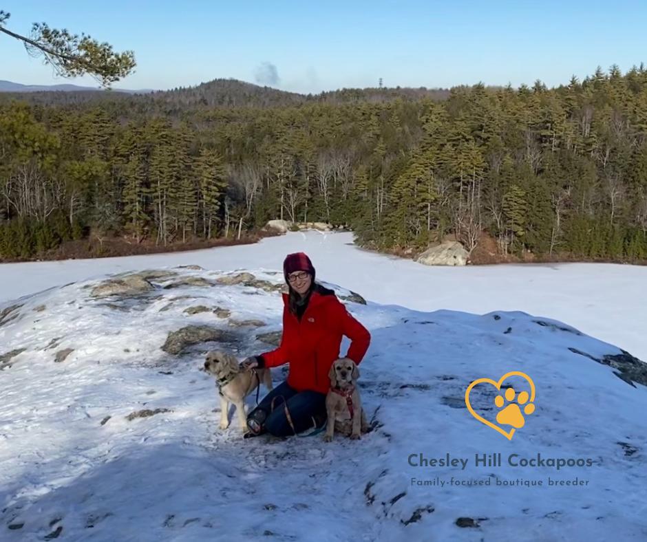 I'm Destiny G., the breeder behind Chesley Hill Cockapoos located in Rochester, NH. When you make the decision to add a Cockapoo puppy to your home, we understand it's a big step and commitment! Our goal is to provide you with an exceptional Cockapoo puppy that has been handled by our children from a young age, provided with age-appropriate socialization, and various activities to ensure a happy and healthy dog. We look forward to connecting with you!