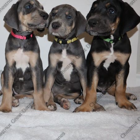 Chestnut Great Danes reports to performing the health tests below on their breeding dogs. Ask your breeder about the tests performed on the parents of your litter. Learn more about health testing for Great Danes.