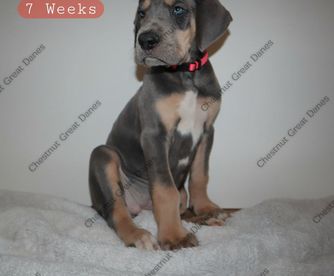 I'm Marissa C., the breeder behind Chestnut Great Danes located in Edinburg, TX. We love to responsibly raise and train our puppies so they have the tools to be well-rounded, beloved family members. We fell in love with the breed because of their intelligence and personality. There’s hardly a better feeling than being able to share them with other families that will love them the way that we do!