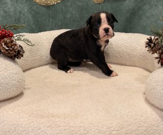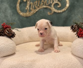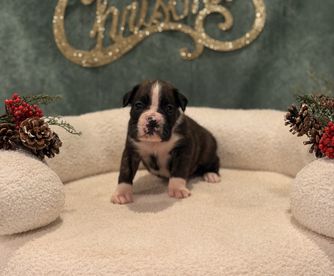 Our puppies include fawn, brindle, and white. Colors will vary depending on the parent dogs.
