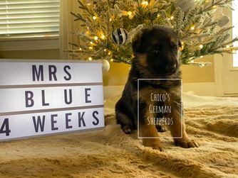 I'm Mary C., the breeder behind Chico's German Shepherds located in Paradise, CA. We love to responsibly raise and train German Shepherds so they have the tools to be well-rounded, beloved family members. We commit ourselves towards preparing each one of our puppies to thrive in their new homes, and we enjoy working with their new families so that they can raise their beloved companions with confidence!