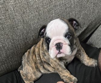 ROXIE is a female Bulldog. Carefully selected as a great representative of her breed, Greg and Denise decided to make her part of their program. Greg and Denise has passed Good Dog’s screening process, which involved a review of their breeding practices, environment, and the mental and physical health of their dogs.