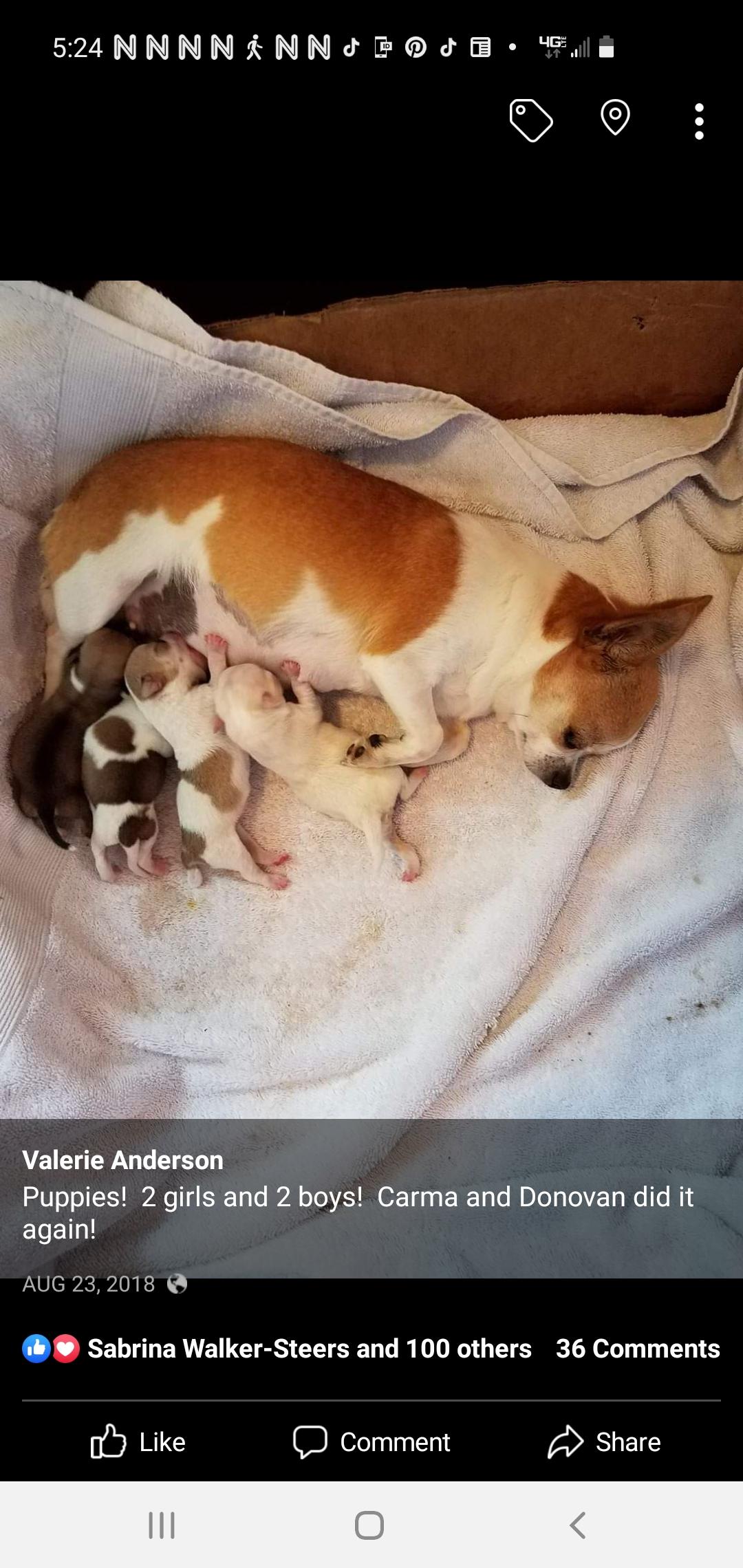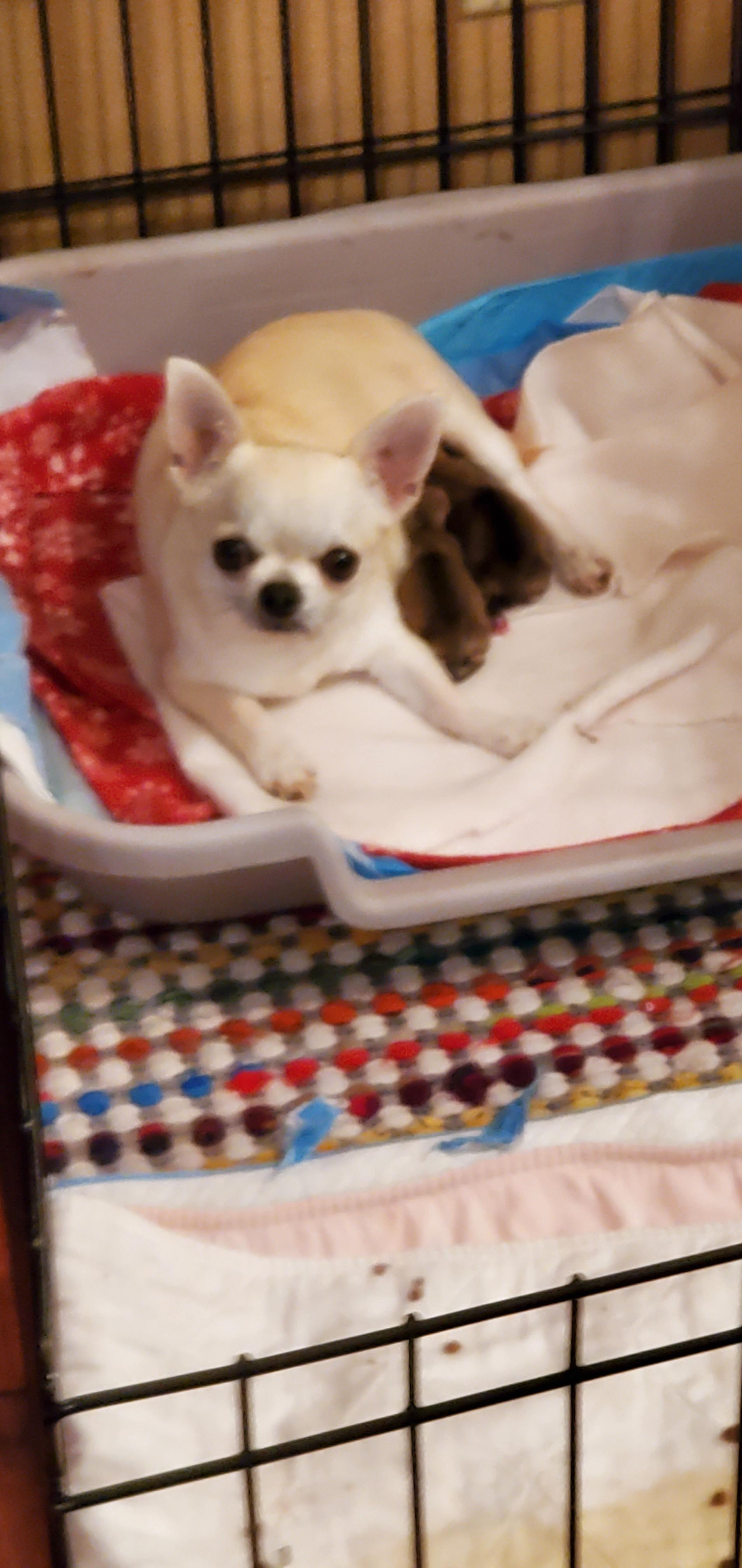 Carma is a female Chihuahua. Carefully selected as a great representative of her breed, Anderson decided to make her part of their program. Anderson has passed Good Dog’s screening process, which involved a review of their breeding practices, environment, and the mental and physical health of their dogs.