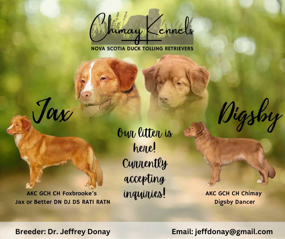 I'm Jeffrey D., the breeder behind Chimay Kennels located in Urbana, OH. All my dogs come from great linages, my first girl is the daughter of Little River Decoy Dancer. Confirmation show dog champions and grand champions are a must before breeding. I follow the NSDTR-USA club breeding guidelines including including testing for hip dysplasia, genetic testing, cardiac and eye exams always. Then evaluating sire and dam for any genetic conflicts. The pair must match to avoid any health issues for the pups. I am a small home breeder and only breed my girls one a year and only 3 litters in a lifetime.