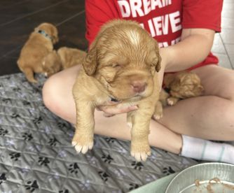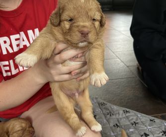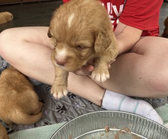 Our puppies are red. Colors will vary depending on the parent dogs.