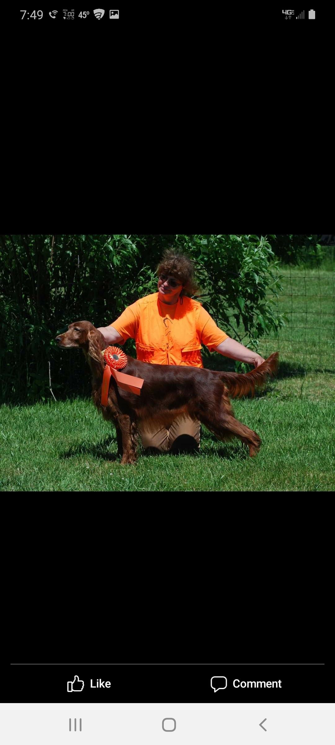 I breed to produce dual Irish Setters that can compete in any venue their owner wants to enter. I am passionate about loving and preparing all of my puppies to excel in any adventure with their new family.