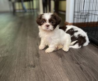Chinx Puppy Songs Liver Shih Tzu Kennel stands out as a truly special place for liver Shih Tzu puppies. With a deep passion for the breed and a commitment to raising healthy and well-socialized pups, our dedication shines through in every aspect. We take pride in our registered and vaccinated liver Shih Tzu puppies, ensuring that each one receives the utmost care and attention. Our puppies boast exquisite markings, mostly white with lovely light brown to dark brown patterns, showcasing the kennel's commitment to breeding beautiful and unique companions. Our kennel's focus on creating a loving and nurturing environment results in puppies with delightful personalities, making them an exceptional choice for families seeking lifelong furry friends.