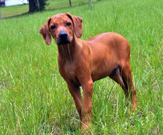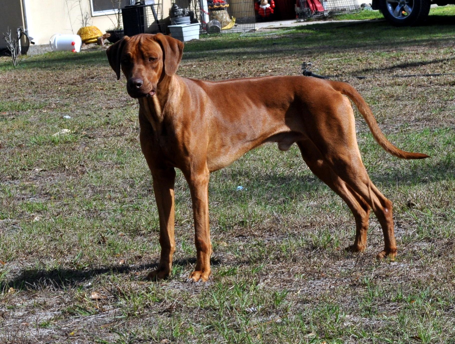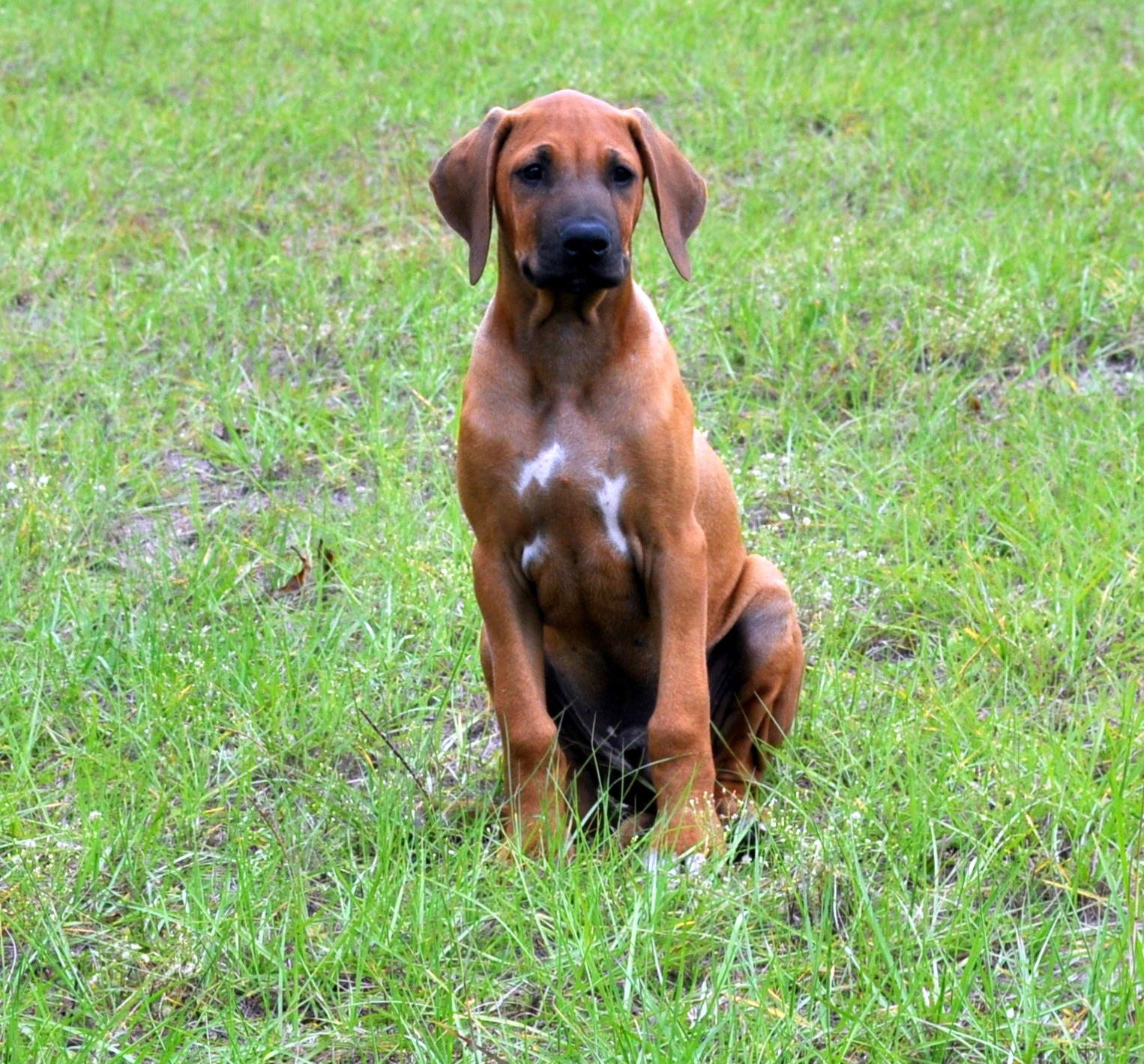 Una is a big girl as was her daddy. She is a mommies girl and could care less about the rest of the world. She loves to play on our 5 acres with the other ridgebacks. She has all of her health testing including hips and elbows.