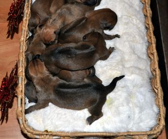 “Puppies will have several deworming's, 2 sets of vaccinations, 2 year health guarantee and a health certificate from my vet. Both parents are Champions. Refundable before they are 6 weeks of age.”