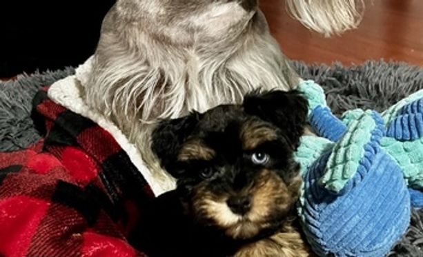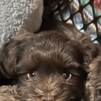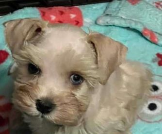 Nala is a great girl! Beautiful wheaten fur. Has a blue eye and a brown one. I won’t be doing a Shnauzer cut on her because she looks absolutely adorable as she is. She is in the small side only 9 lbs but is the sweetest most loving pup. Greta along great with other dogs, with children, and other people. She is certified and dna tested.