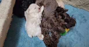 Our puppies include wheaten, white, liver, and black. Colors will vary depending on the parent dogs.