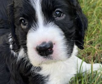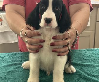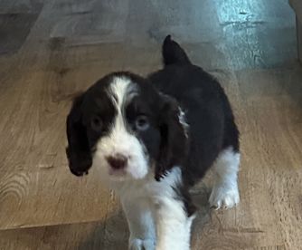 Our puppies include liver and white and black and white. Colors will vary depending on the parent dogs.