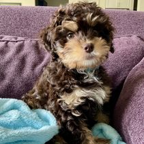 My wife and I were considering adopting a Cavalier puppy and a friend recommended we look at Gooddog.com and that is how we found Samantha from Chocolate Cavalier. We looked at other breeders on Gooddog but Samantha was one of the few breeders (within driving distance for us) that included the parents’ health information. While we were considering adopting Cavalier, we also saw she had Cavapoo puppies available. We arranged a phone meeting so we could ask questions and find out some of the differences in temperament between the 2 breeds. It was a tough decision between the two breeds but we ultimately decided on a Cavapoo. Samantha was helpful in providing lodging recommendations for us since it was a 5 hour drive for us each way. We met 2 of the cavapoo’s (Chai and Cider) and while it was a tough decision we chose Cider, now renamed to Chakotay. He is a wonderful puppy and a quick learner. Samantha was very helpful during the adoption process and also answering our questions after the adoption process. We are considering a 2nd Cavapoo down the road and we will definitely adopt from Samantha again.