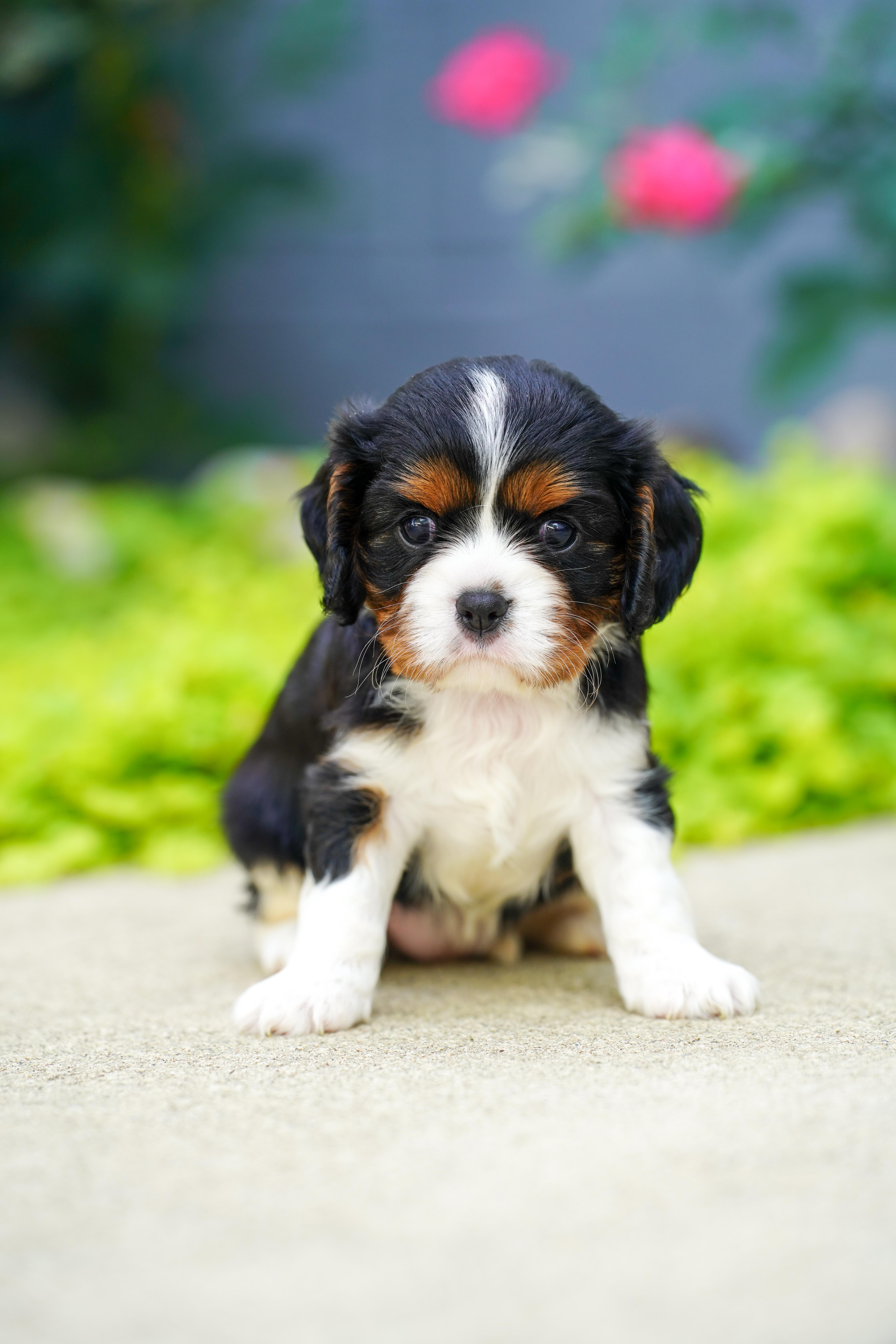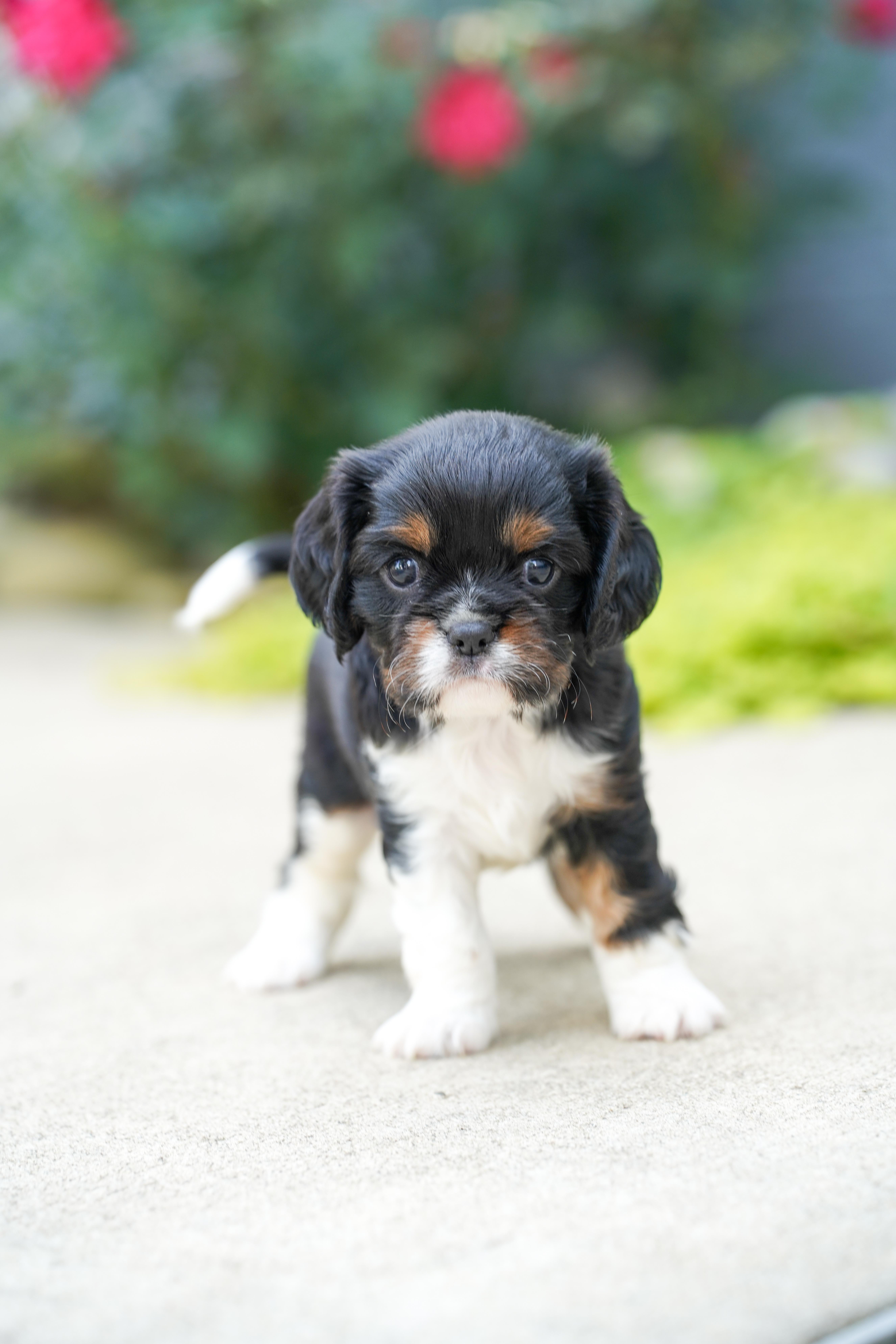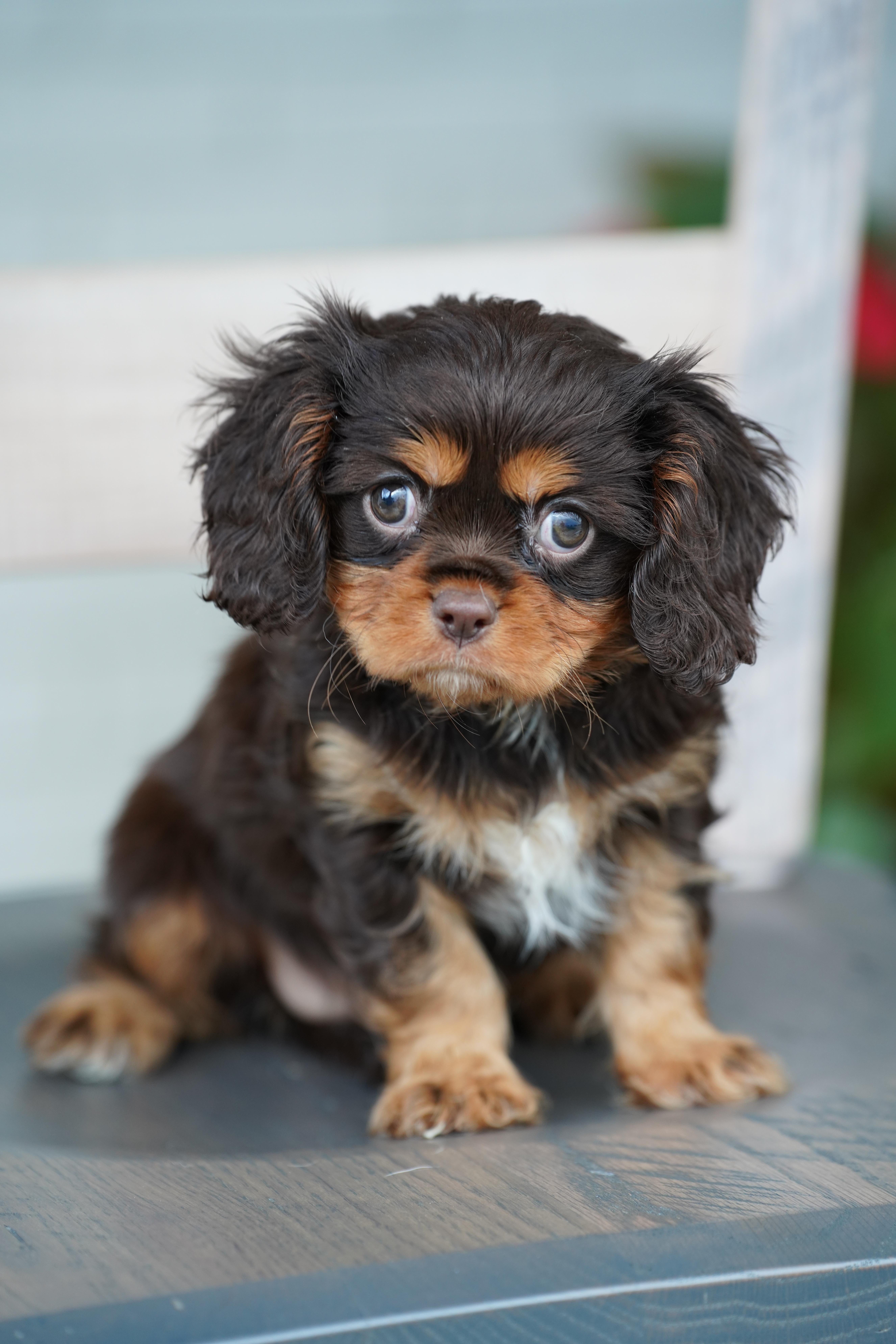Our puppies include blenheim, ruby, black and white, tri-color, black and tan, and chocolate. Colors will vary depending on the parent dogs.
