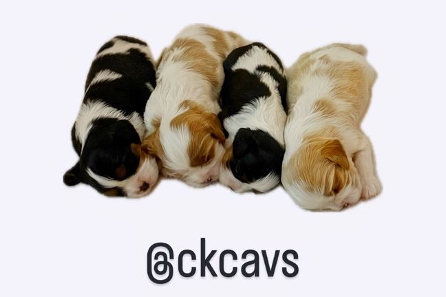 Our puppies include blenheim, ruby, tri-color, and black and tan. Colors will vary depending on the parent dogs.