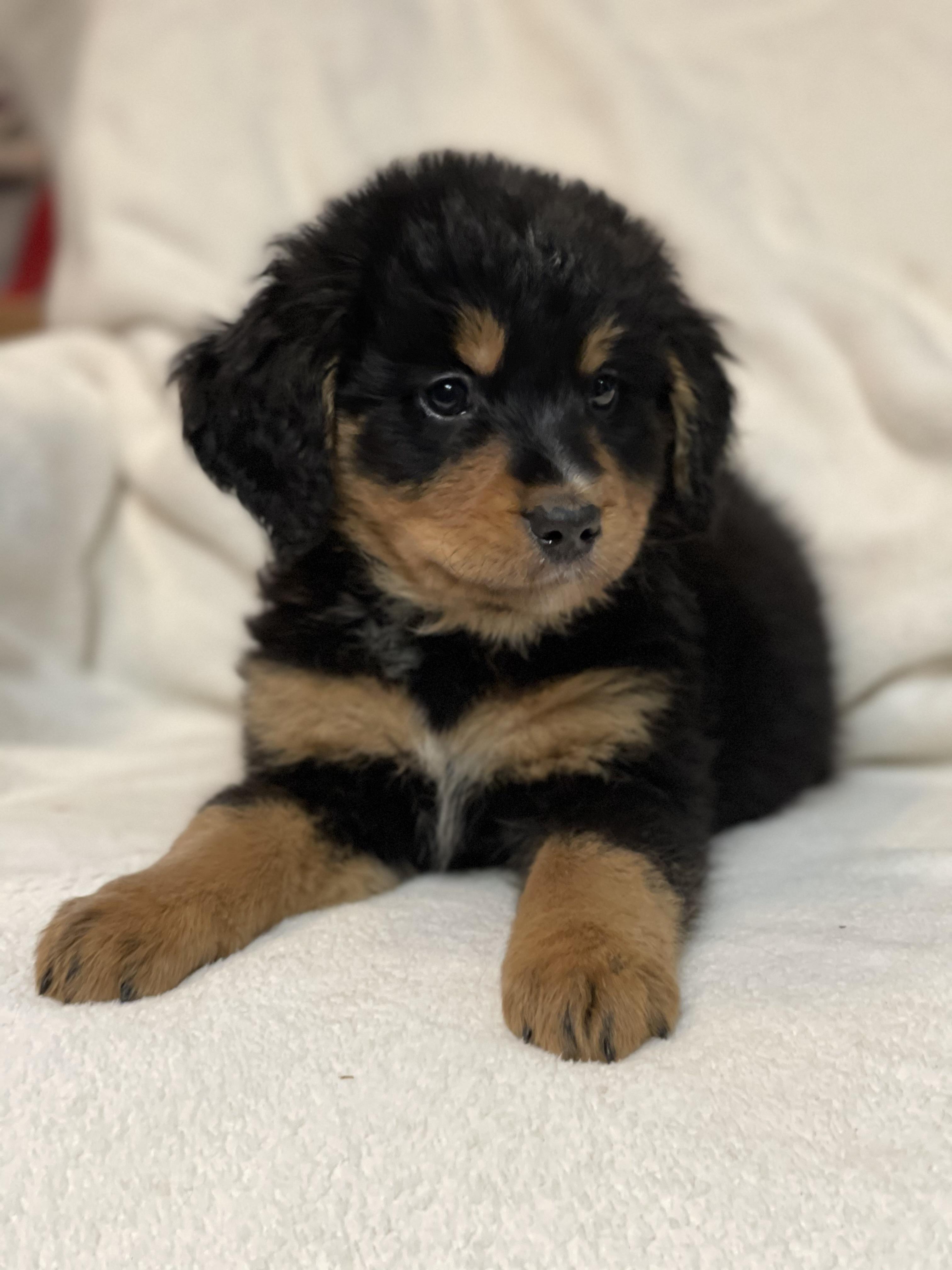 Our Bernedoodle puppies include tri-color and phantom. Aussiedoodle puppies are black tri-color. Poodle puppies include cream, parti, and phantom. Colors will vary depending on the parent dogs.