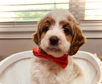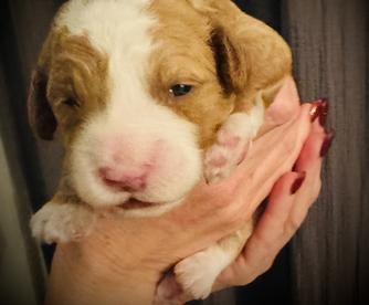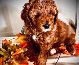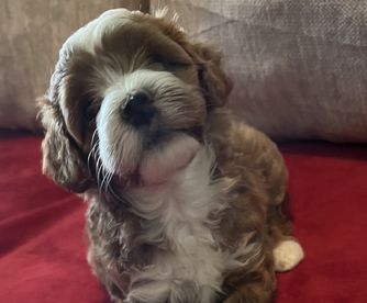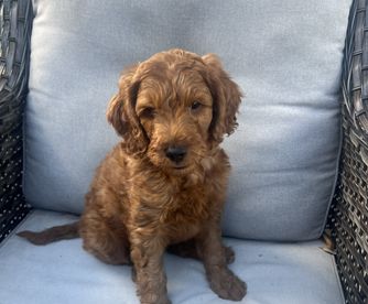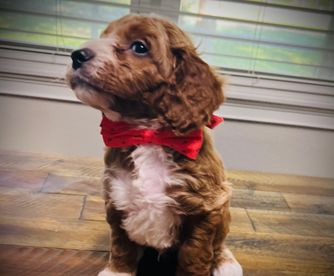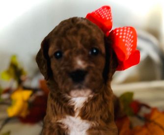 Our Goldendoodle puppies are red. Cavapoo puppies are red. Colors will vary depending on the parent dogs.