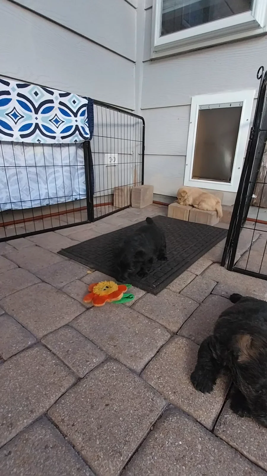 We are such big boys now. Mommy has a play yard inside and out with doggy door between. We go poo outside all the time! Now sometimes we forget to go out there to go pee pee but we are trying.