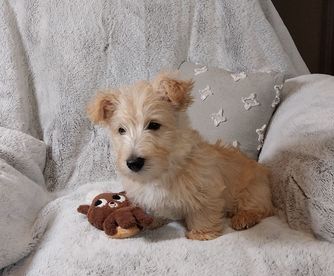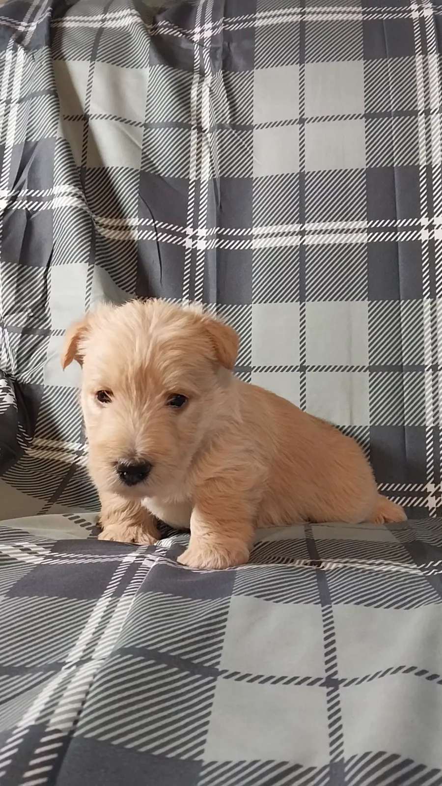 We raise the Scotties in our loving home. No cages in our home and they will know how to use a doggie door by 4 weeks old. They are socialized with other dogs and all ages of people from very young to senior citizens.