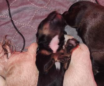 Our puppies include red, sable, buff, black and tan, and black. Colors will vary depending on the parent dogs.