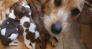 Our puppies include wirehaired and longhaired coat varieties. Coat types may vary depending on the parent dogs.