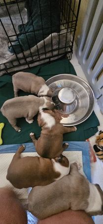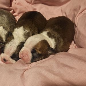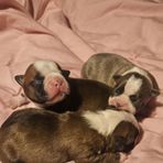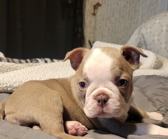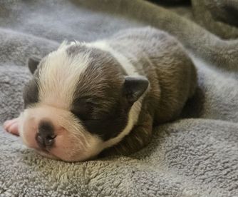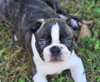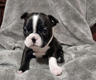 Our puppies include seal brindle and white, black brindle and white, seal and white, and black and white. Colors will vary depending on the parent dogs.