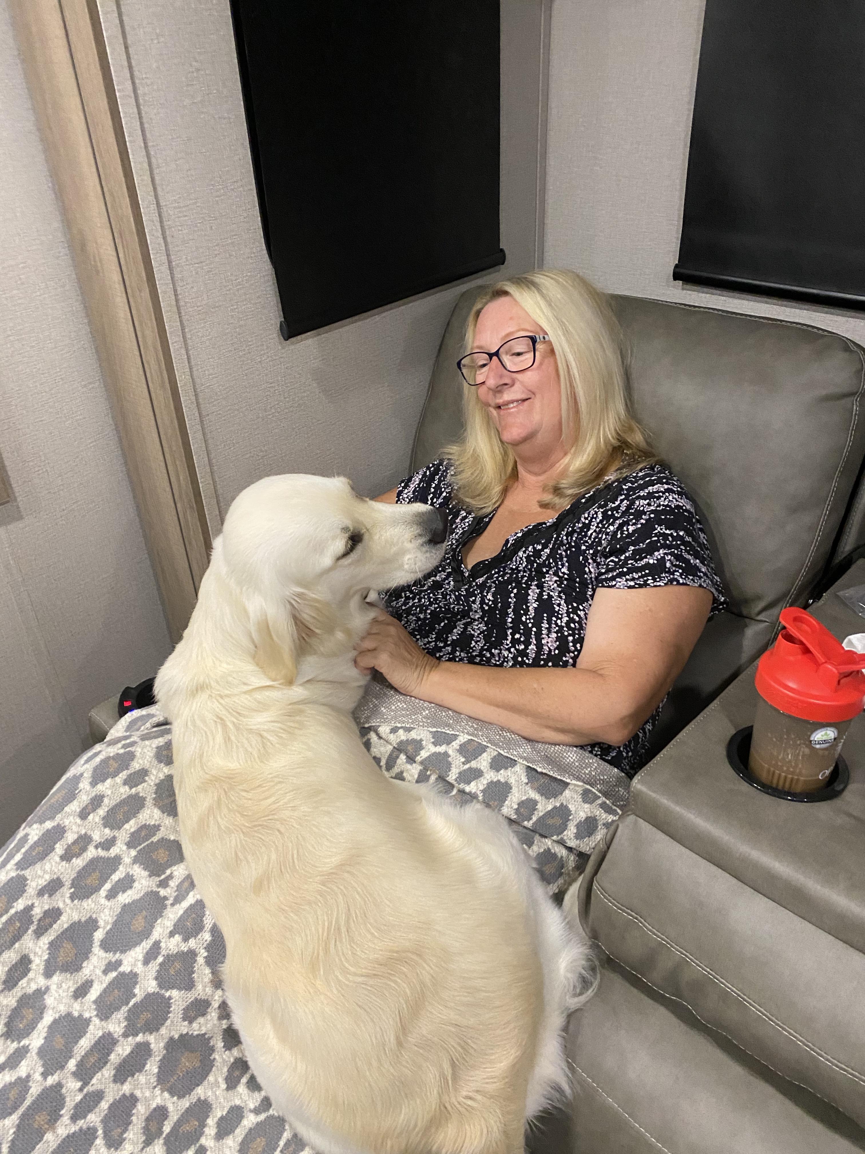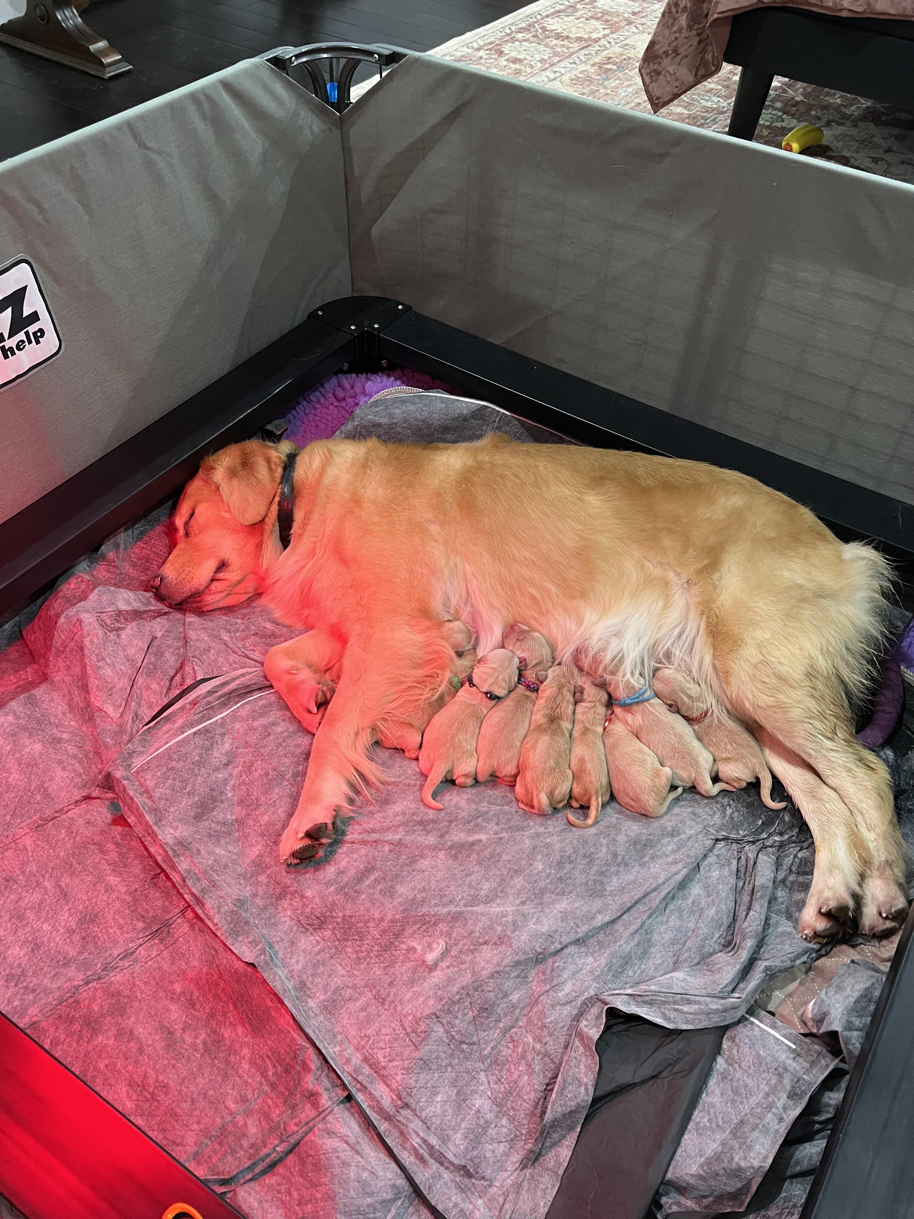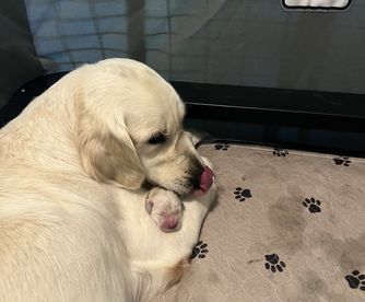 As a first time dog owner, I am so grateful to have come across Joanna's page on Good Dog when my husband and I started our search for a golden retriever. Not only was she so easy to work with, Joanna's process was seamless and you could tell how much care she puts into safe breeding and raising these pups with the most proper care before they go to their forever homes. She also temperament tests each puppy to ensure they go home with the right family, which is how we ended up with our girl, Margot. She is truly the sweetest, most gentle dog -- with a unique personality that never ceases to make us laugh. We are constantly getting compliments from family and friends about how calm her demeanor is. We are so grateful to have worked with Joanna on adding Margot to our family and I can confidently say you won't regret working with her either.