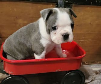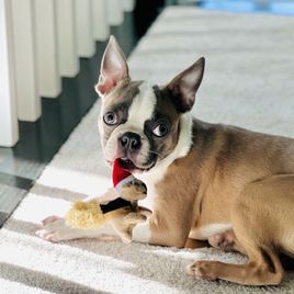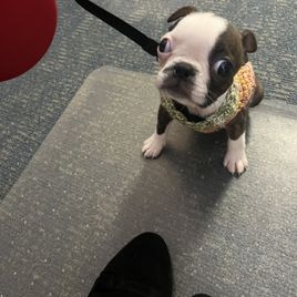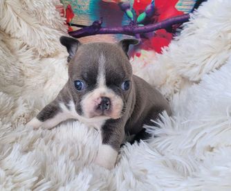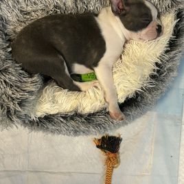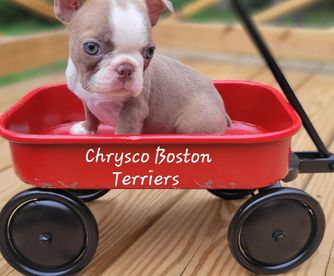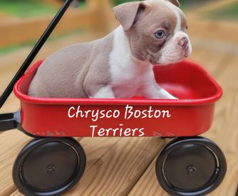 If you’re looking for a Boston Terrier, I HIGHLY recommend Chrysco Boston Terriers. Our blue fawn Bostie - now 4 months old - is healthy, behaved, loving, socially adjusted, and absolutely beautiful. I credit Chrystal for this as she truly cares for her puppies during the critical first 8 weeks. In fact, our boy was nearly house trained when we got him! During the wait period, Chrystal frequently sent pictures so we could see his development. At pick-up, she was impressively organized with the paperwork and generous with a “welcome kit” (collar, toys, treats, very cool key chain). She is a real professional and cares about both her puppies and their new owners. If we get another Bostie, I will 100% be working with Chrystal again!!