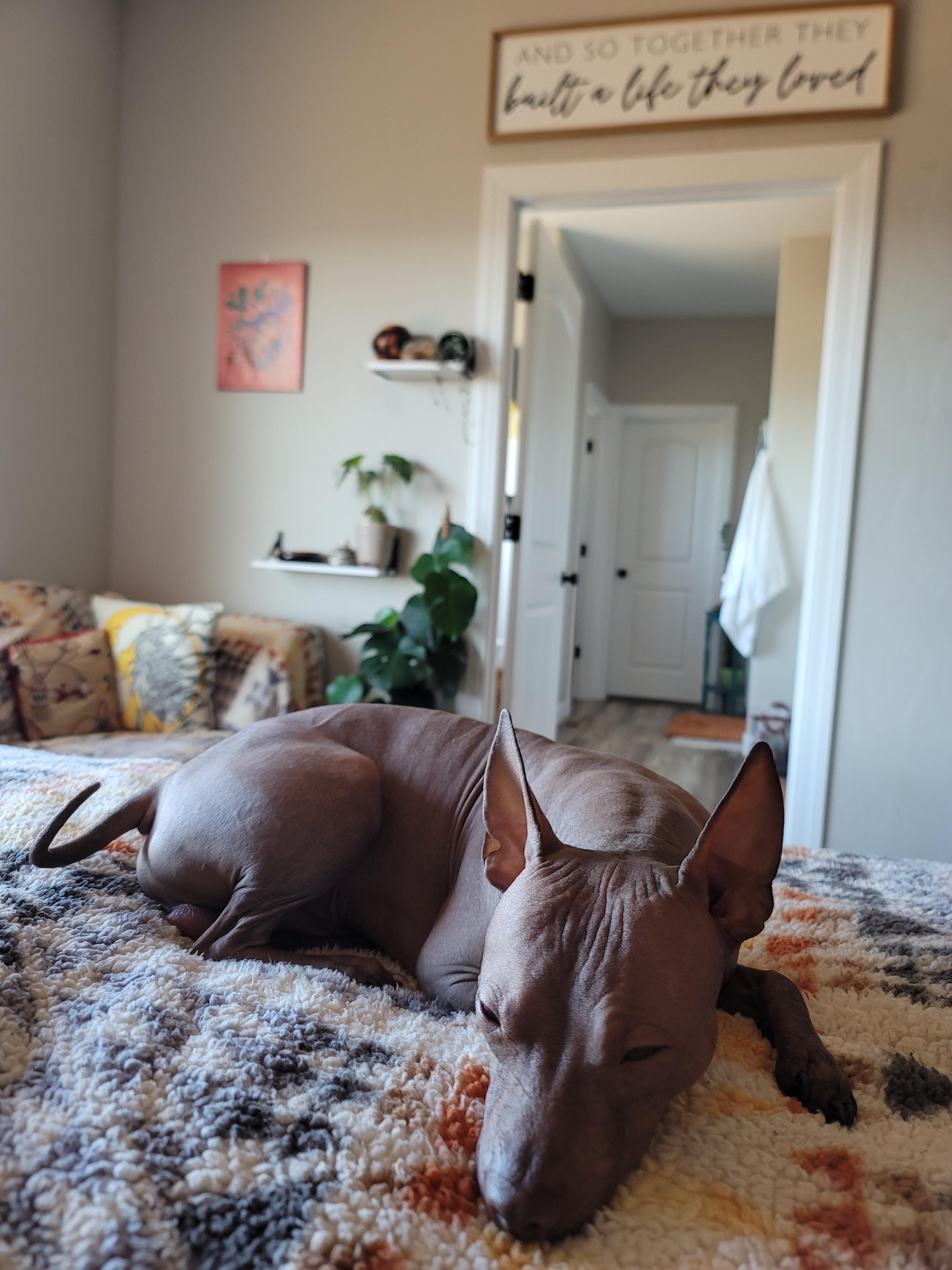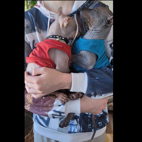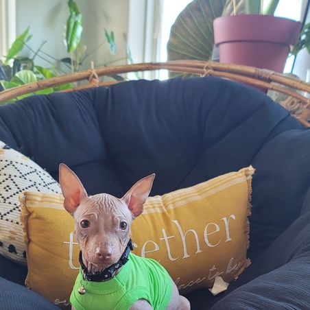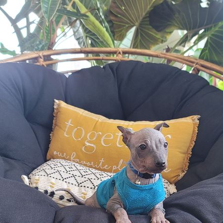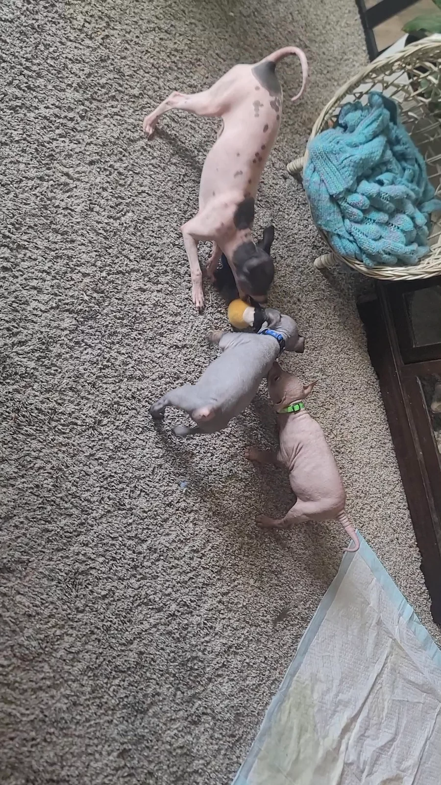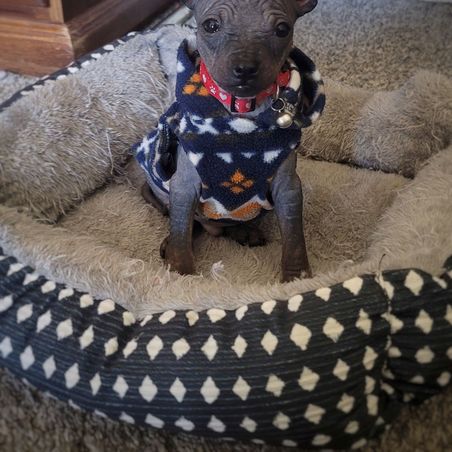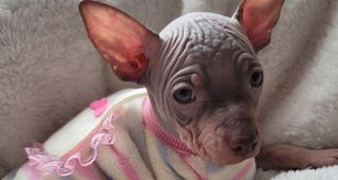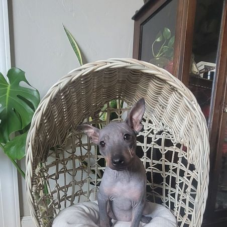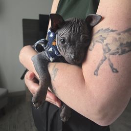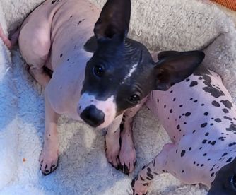Our puppies have hairless coats. Coat types may vary depending on the parent dogs.