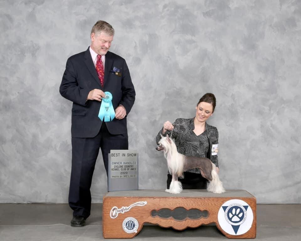 I'm Jessica S., the breeder behind Ciao Bella Chinese Cresteds located in Blue Earth, MN. Ciao Bella Chinese Cresteds is based in southern MN. All of our dogs are in our home and part of the family. Our puppies are raised indoors with children. Our puppies are frequently handled, socialized, and exposed to a number of noises and situations. Our goal is to produce crested puppies that adhere to the AKC breed standard in both structure and temperament.