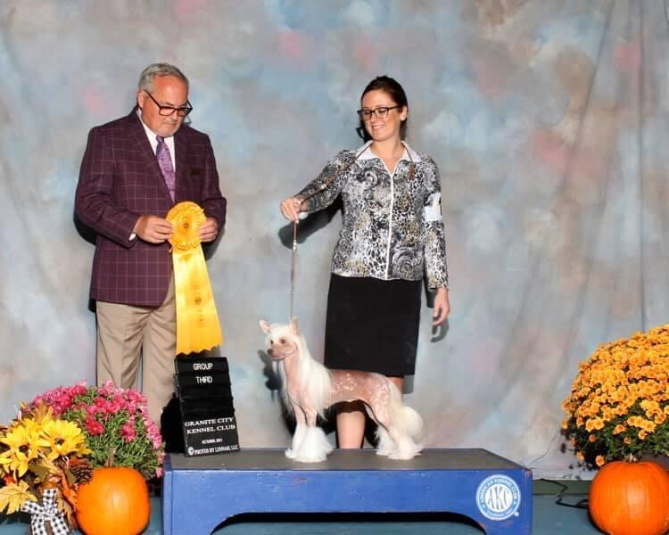 Ruby is a female Chinese Crested. Carefully selected as a great representative of her breed, Jessica decided to make her part of their program. Jessica has passed Good Dog’s screening process, which involved a review of their breeding practices, environment, and the mental and physical health of their dogs.