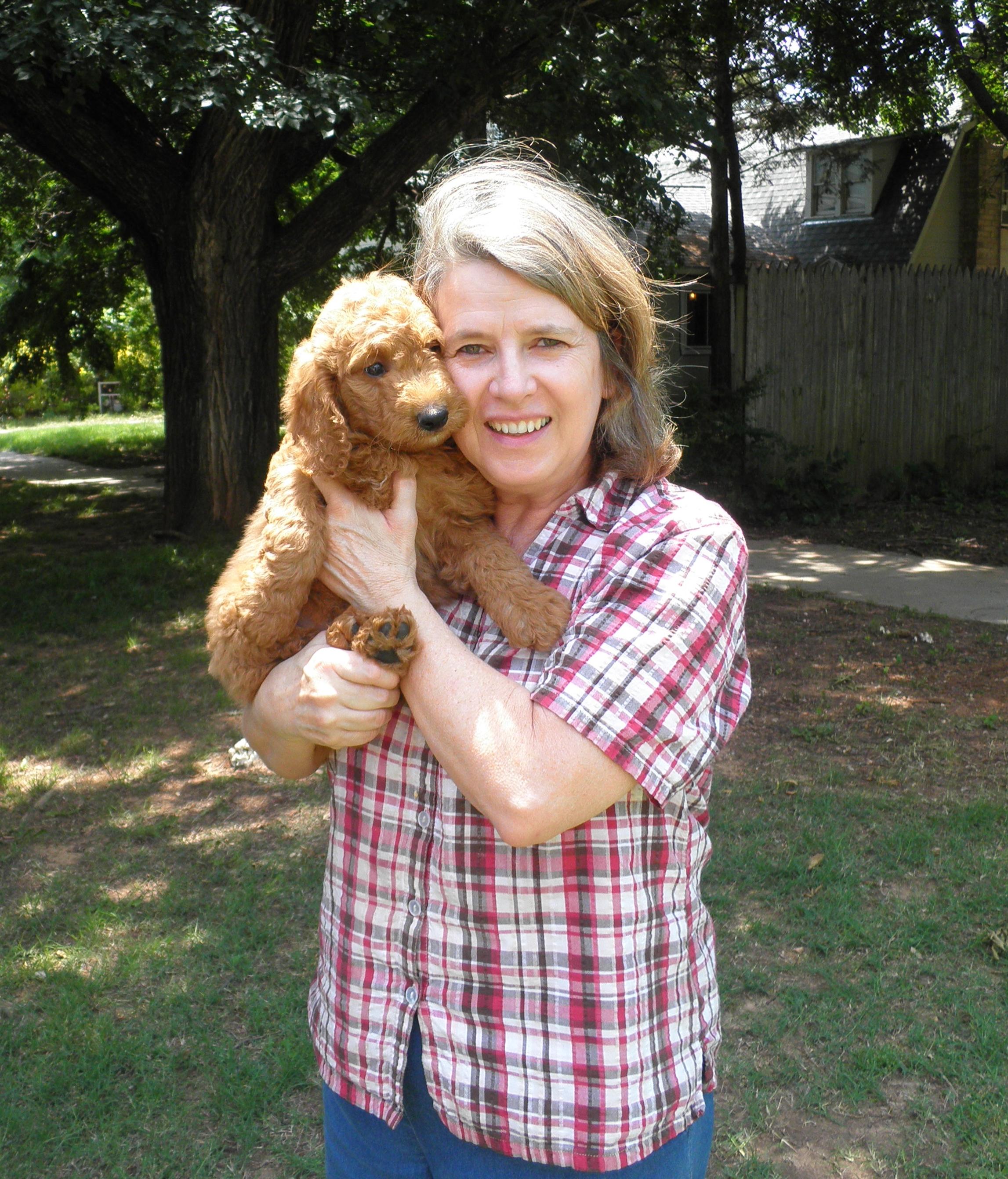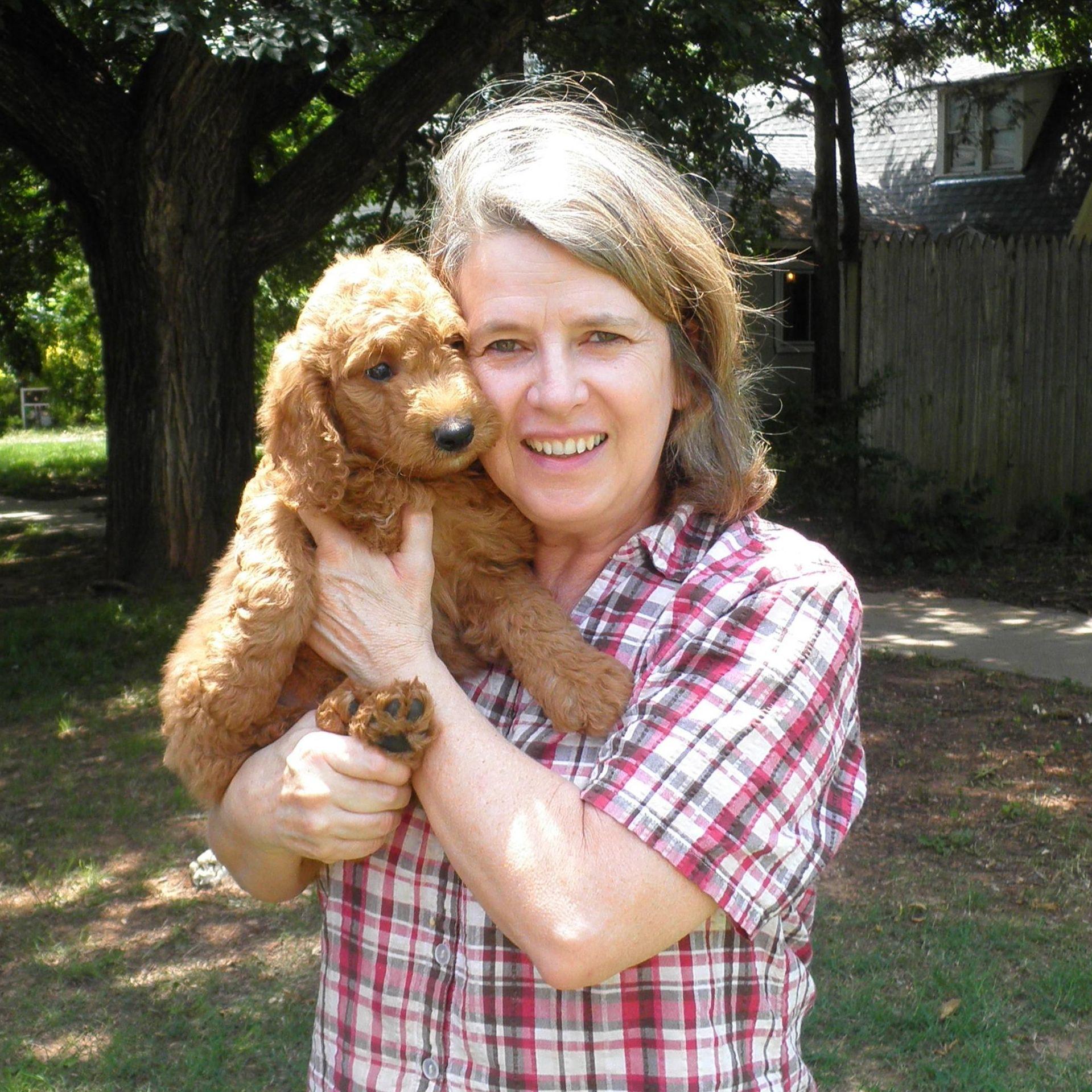I'm Laura C., the breeder behind Cimarron Frontier Doodles located in Stillwater, OK. I choose breeding dogs based mostly on health and temperament. I really try to have family companions who are safe with children. My puppies are born in my home. I expand their nursery area when they are about 3 1/2 to 4 weeks old, and place shallow litter boxes in the area. I replace it with deeper ones as I expand the puppy area. I utilize Puppy Culture, doggie doors, and my grandchildren in the rearing of my puppies. I do everything I can to ensure my puppies have what they need to develop into healthy and happy dogs and I can provide extensive knowledge and guidance for any family looking to bring home one of these wonderful dogs.