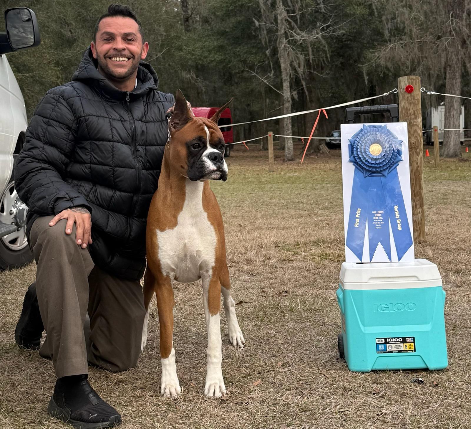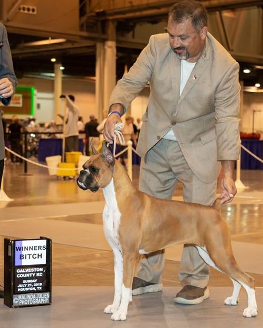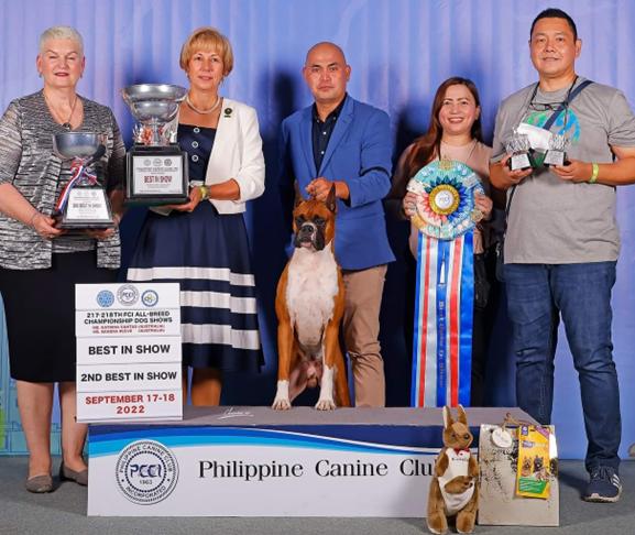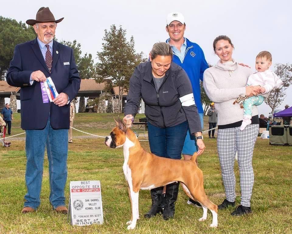 Freddie is now in the Philippines, where he is won multiple Best In Shows at numerous prestigious shows and a Hall of Fame winner. In the short time he was here in the US, he achieved his championship by 10 months old and his grand shortly after. As a boxer under the age of one, he went Best of Breed over the 1 male boxer in the country at the prestigious Beverley Hills Kennel Club. We are so proud of this handsome boy from our breeding program.