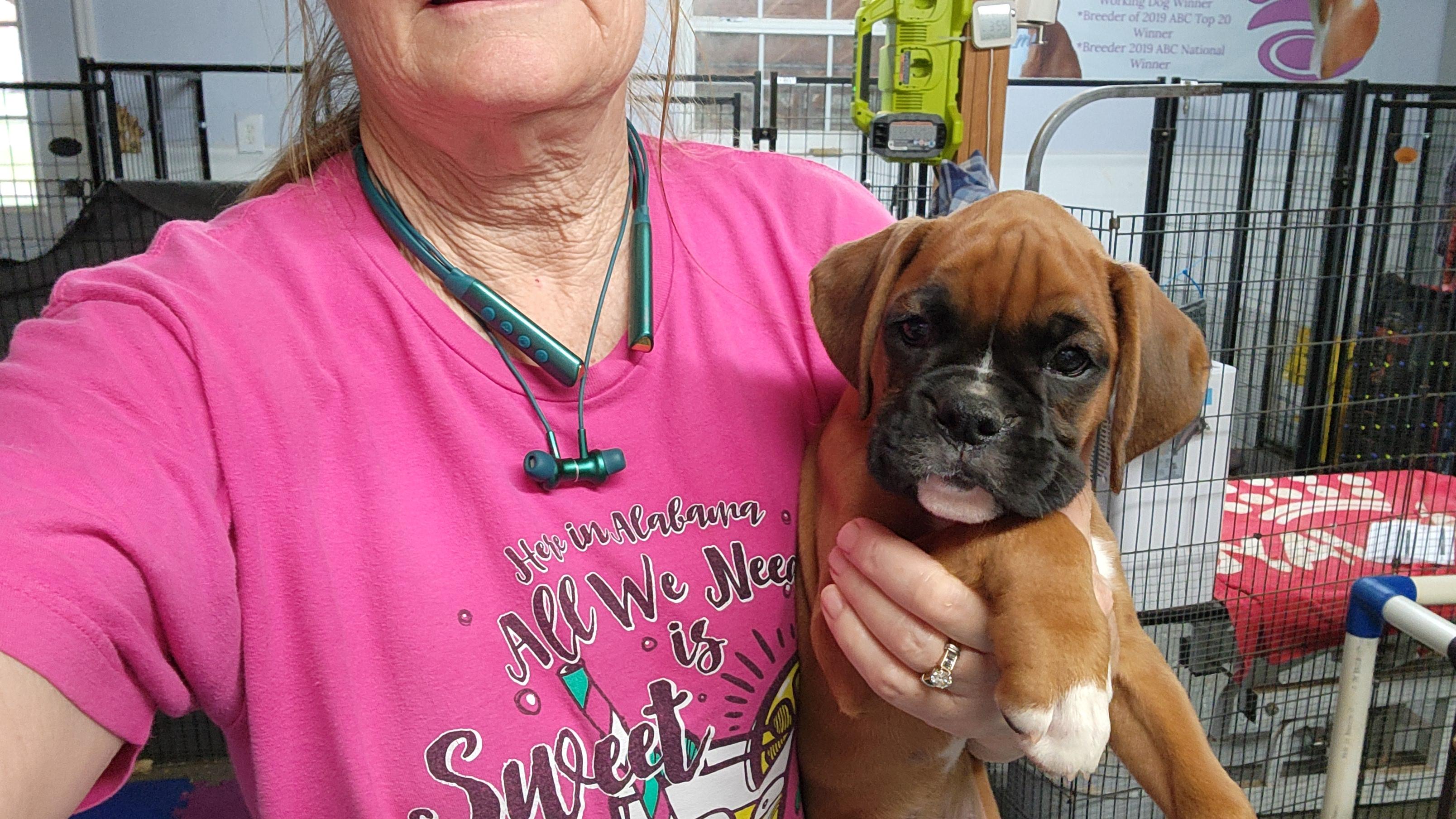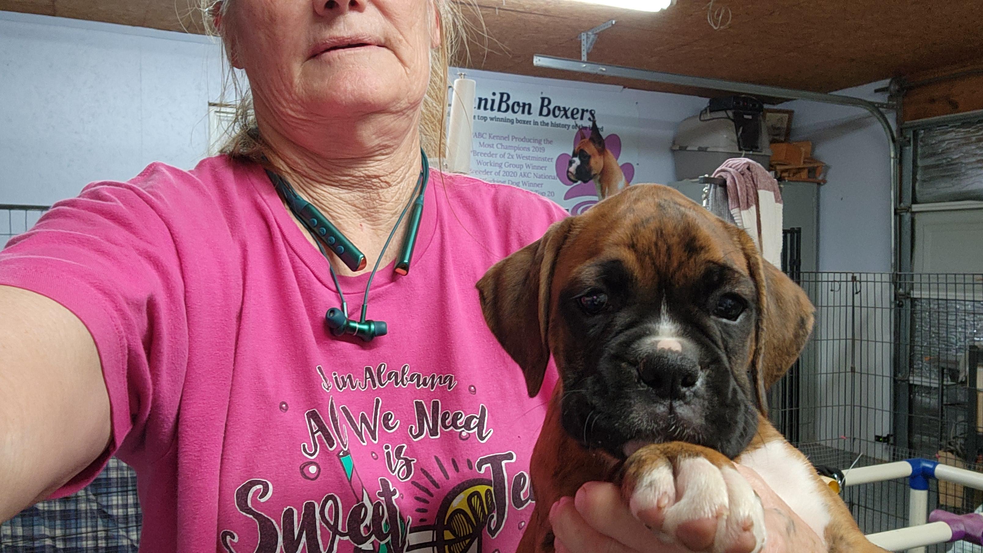 I'm Bonnie W., the breeder behind CinniBon Boxers located in Athens, AL. Nationally recognized kennel,breeding the top winning boxer in the history of the breed.We adhere to the Boxer Club standard.We breed for structure, temperament, and health, with an emphasis on heart, as our primary focus.Our dogs are health tested regularly. Families carefully vetted for adoption.