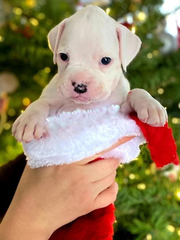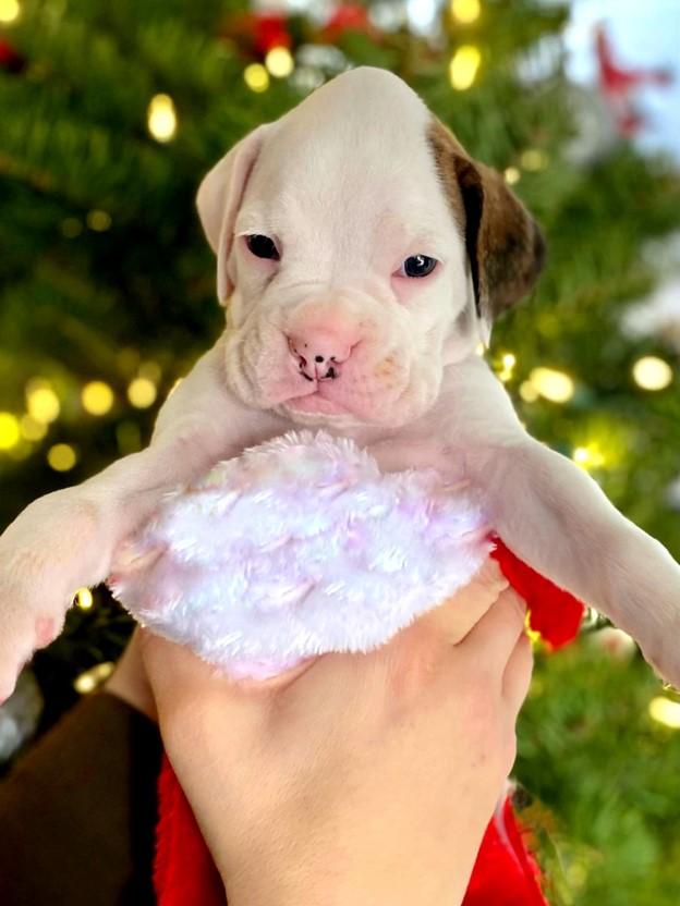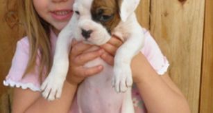 Our puppies include fawn, brindle, and white. Colors will vary depending on the parent dogs.