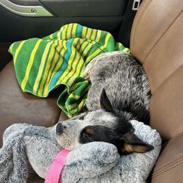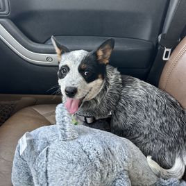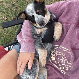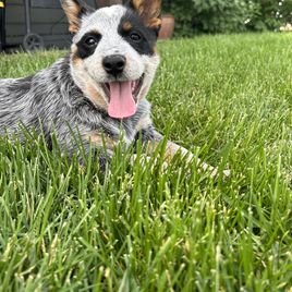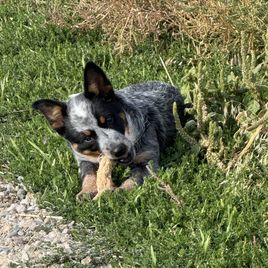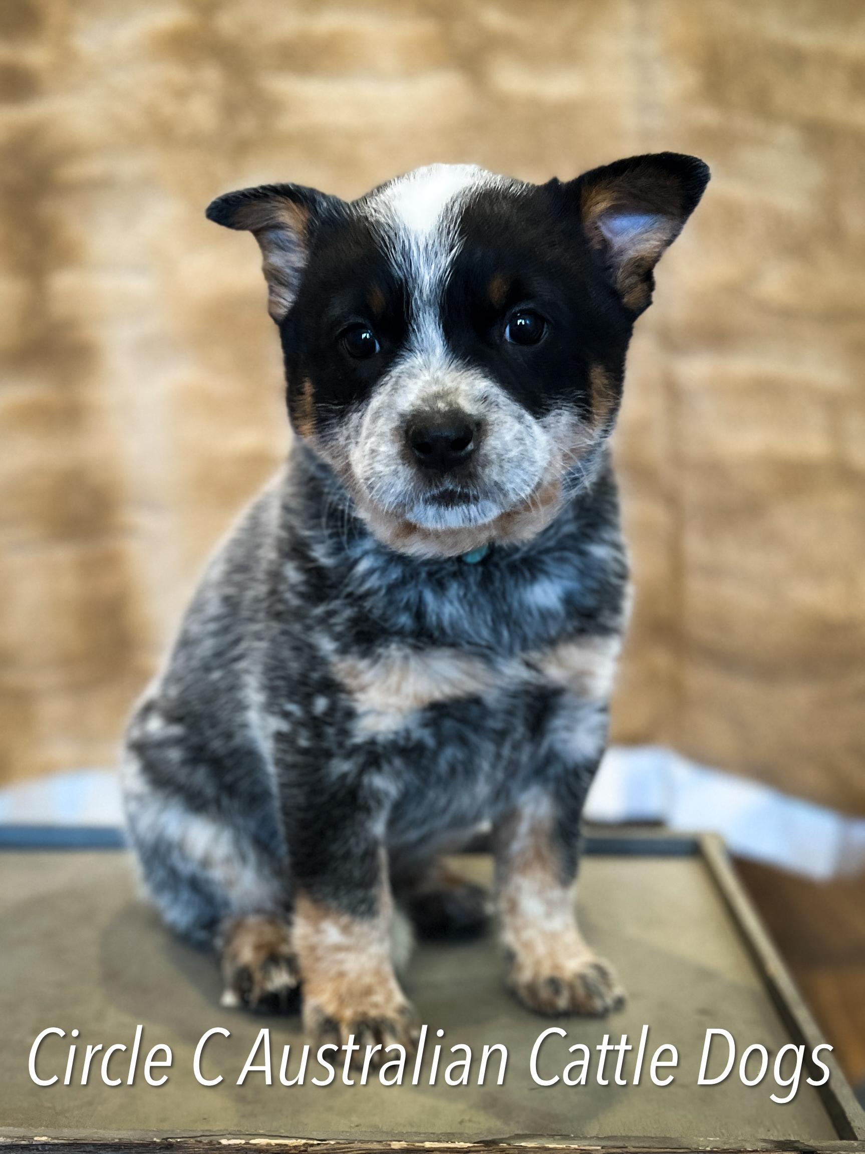 When I decided to get a Cattle Dog I read a lot of the breeders stories but Circle C stood out. The first thing that I liked was that her pups were introduced to children. There aren't a lot of children in our area so it was important that when my grandchildren visit in the summer our pup was used to children. Then when she said her dogs were hard working goof balls I was sure I wanted one of her pups. That meant to me that her dogs were smart but had lots of personality. Jennifer sent pictures weekly and was always available to answer my questions.